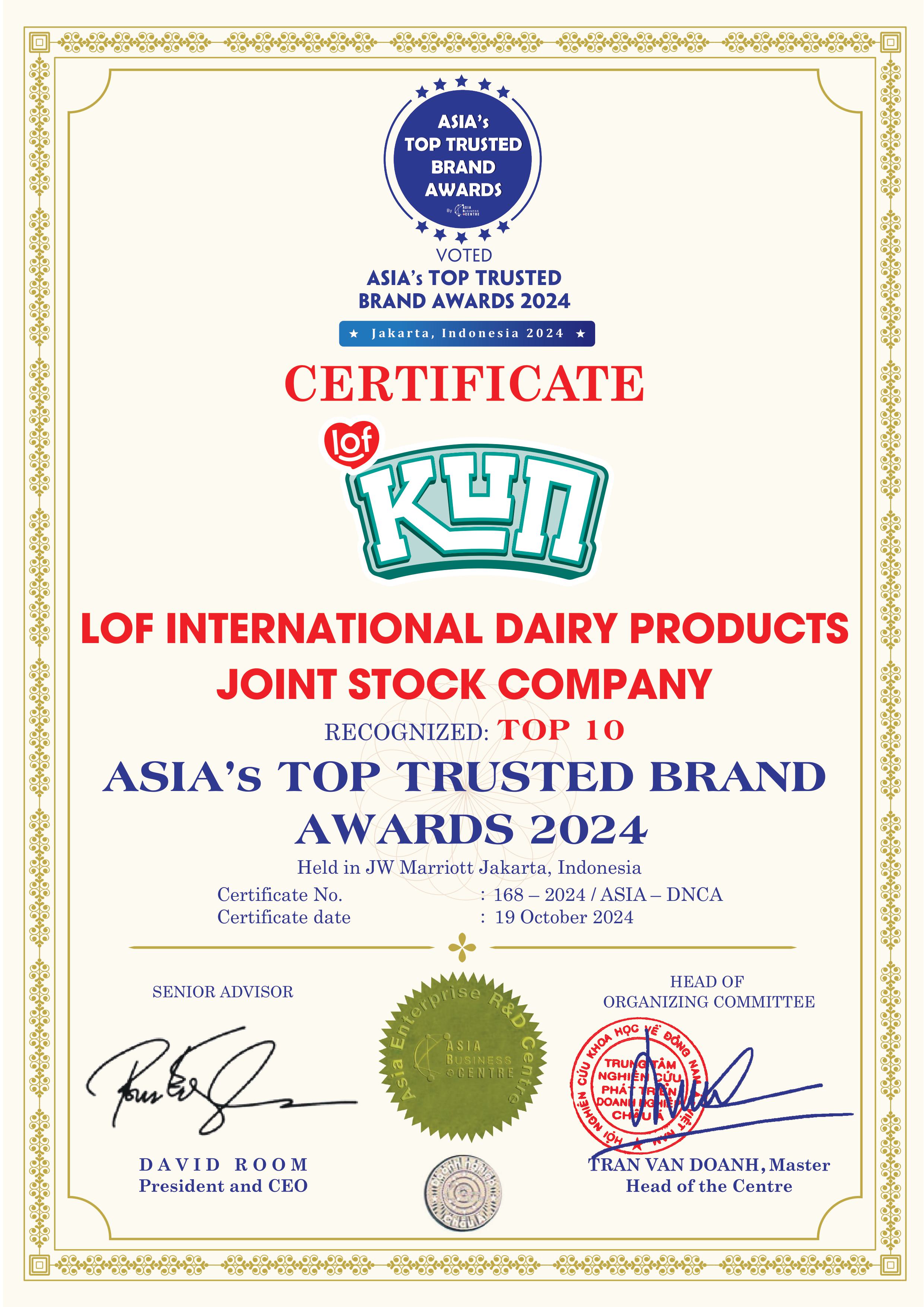 Tại Công ty cổ phần sữa quốc tế Lof, chúng tôi tự hào về những thành tựu đã đạt được trong suốt chặng đường phát triển. Những giải thưởng và ghi nhận mà chúng tôi vinh dự nhận được không chỉ là minh chứng cho chất lượng sản phẩm và dịch vụ xuất sắc mà còn là sự công nhận cho những cống hiến không ngừng nghỉ của chúng tôi đối với cộng đồng.